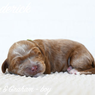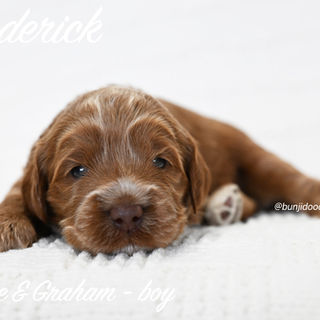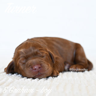Sadie and Graham’s new litter has arrived, with six beautiful puppies, four girls and two boys. They have lovely straight coats and rich red coloring. Expected to mature between 25 and 35 pounds, they should be a nice medium size for many families. This pairing will produce balanced, thoughtful temperaments, making them well suited for family life and potential therapy work. They will absolueley have that sweet mix of playful and affectionate, and we are looking forward to watching them grow.
